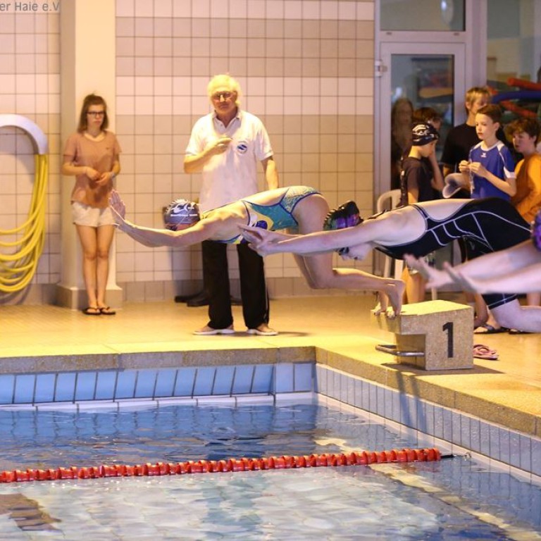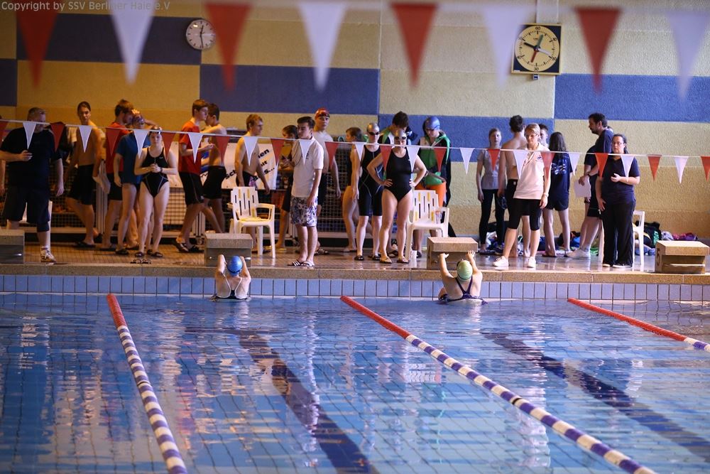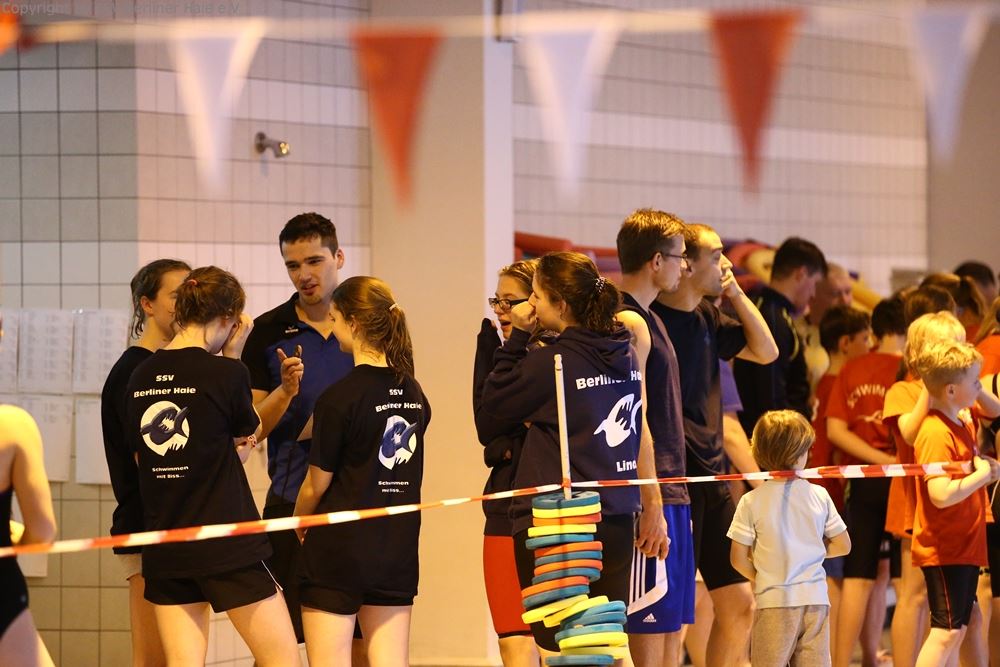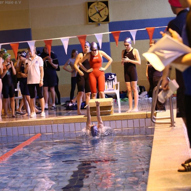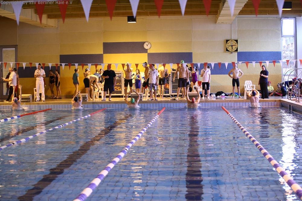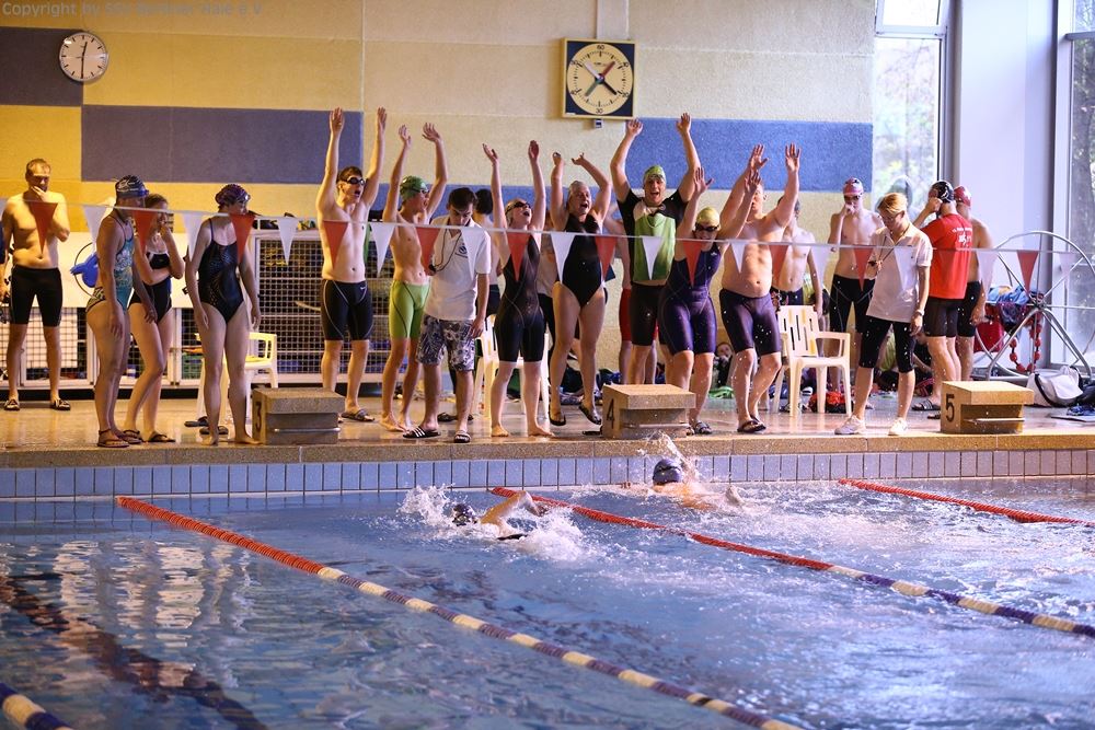 Um 9.45 Uhr öffnen sich die Tore der Schwimmhalle und alle Schwimmer stürmen in die Umkleiden. Die Vereine versammeln sich Gruppenweise in der Halle. Kurze Lagebesprechung und schon werden die ersten Bahnen gezogen, denn gute Vorbereitung ist die halbe Miete.