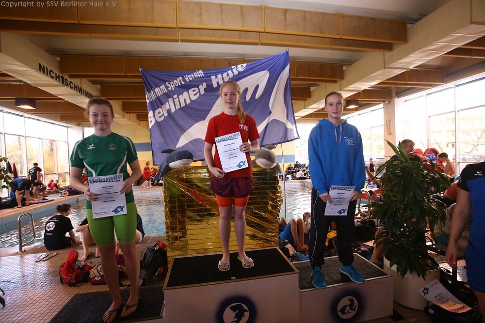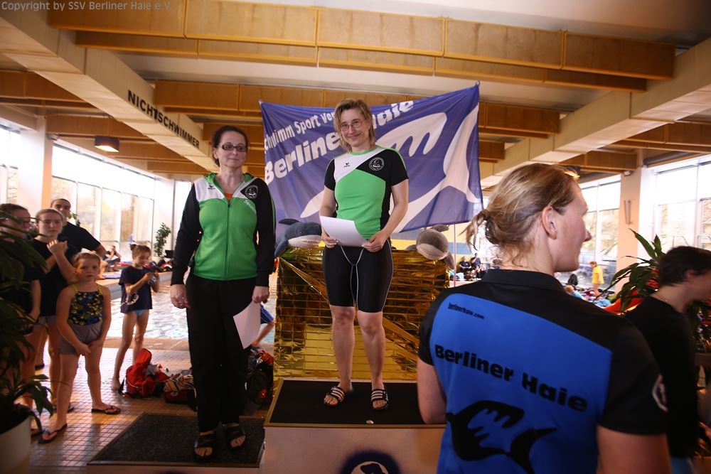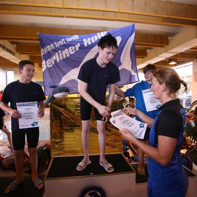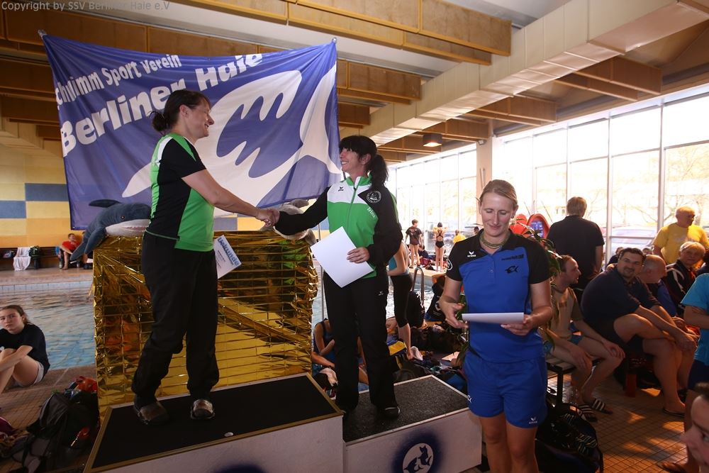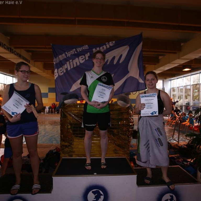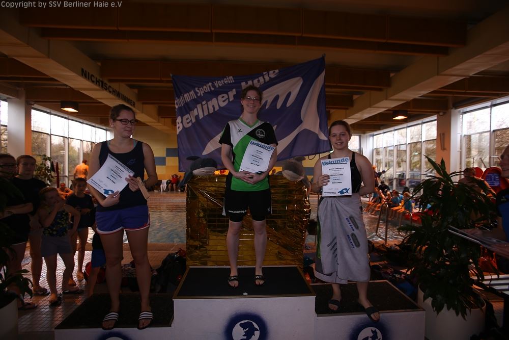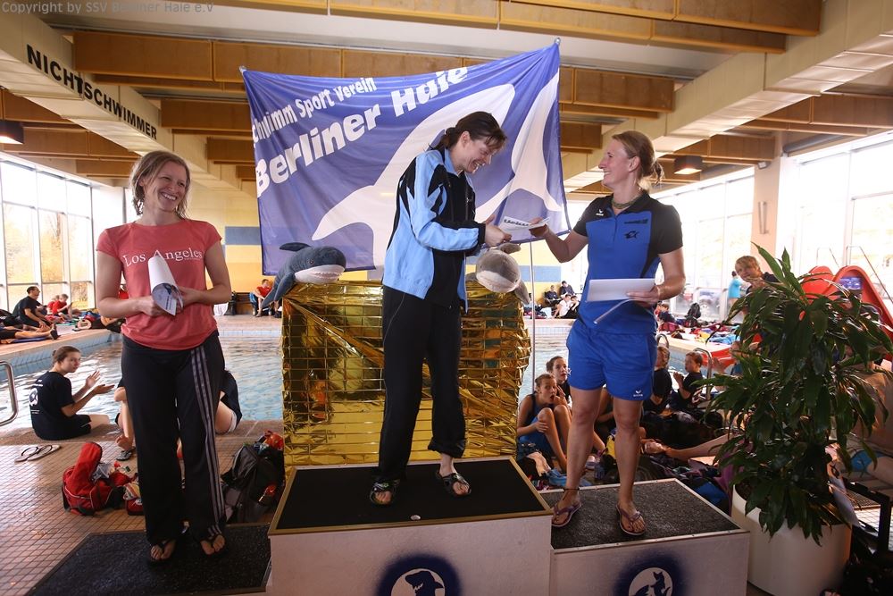 Nach dem ersten Teil des Wettkampfes findet eine Siegerehrung statt. Auf dem Treppchen sehen die Haie doch immer wieder gut aus.