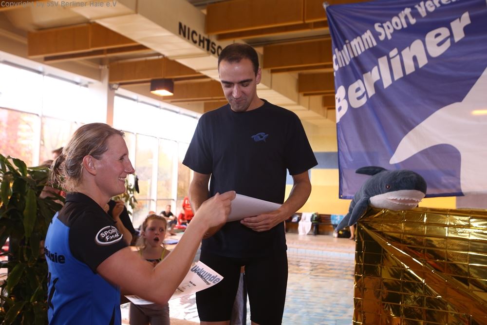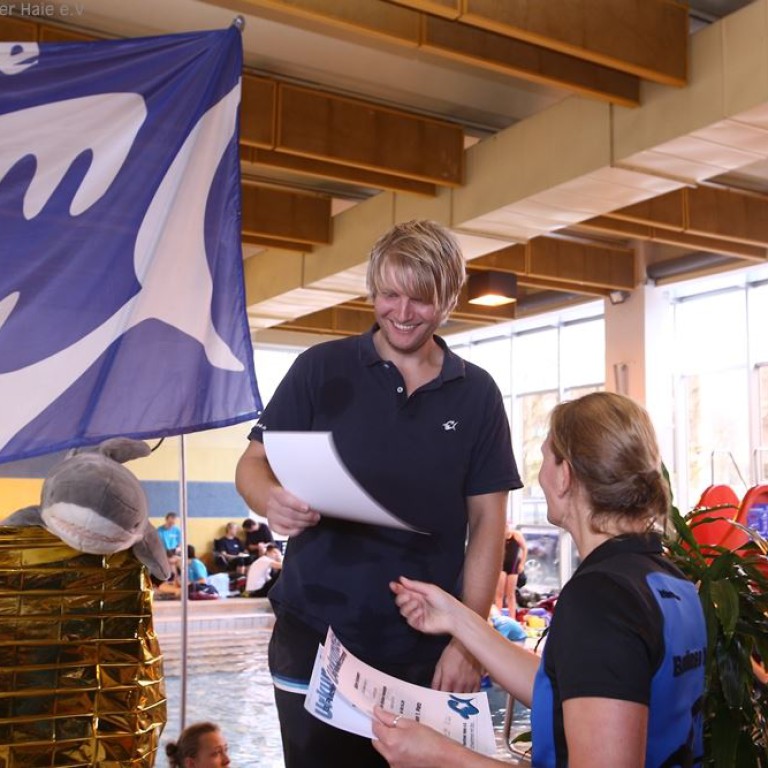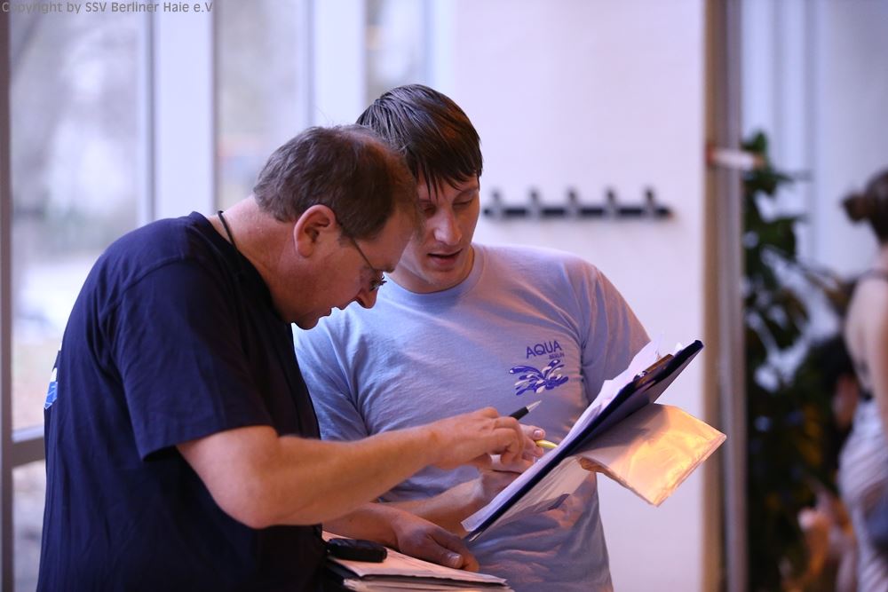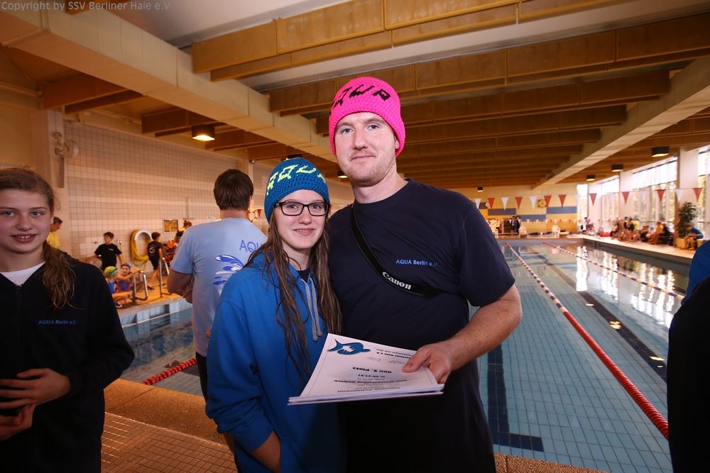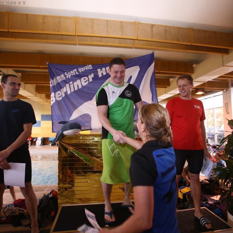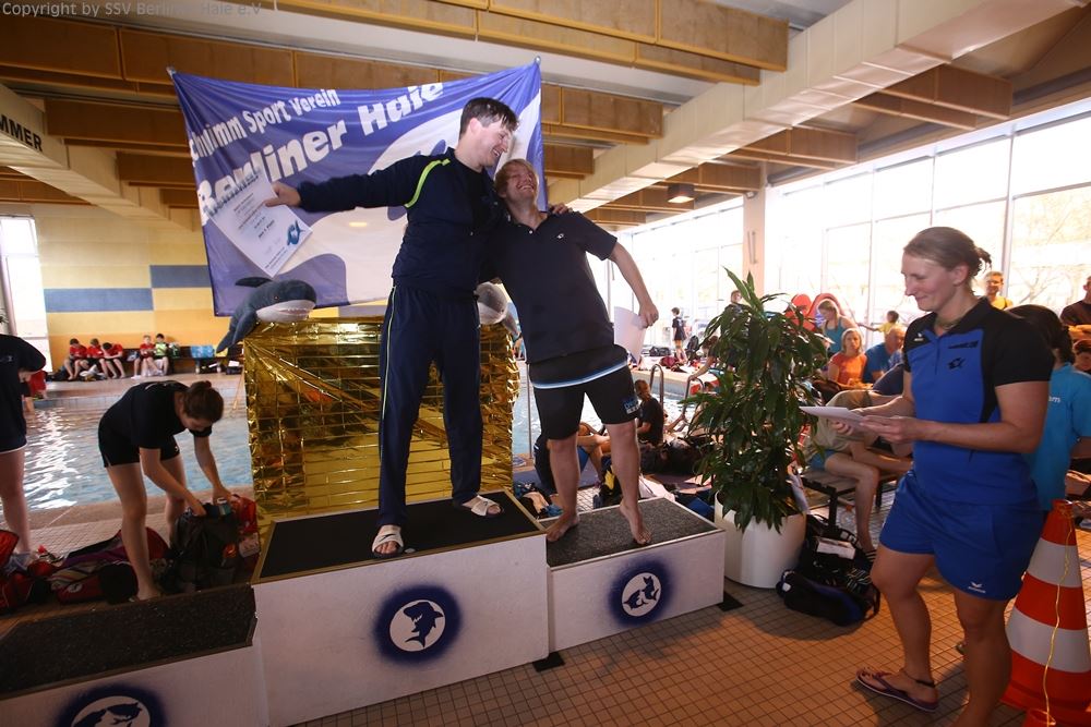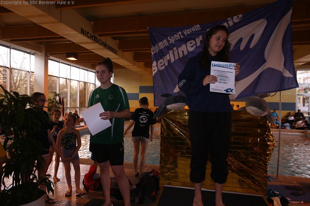 Nach dem ersten Teil des Wettkampfes findet eine Siegerehrung statt. Auf dem Treppchen sehen die Haie doch immer wieder gut aus.