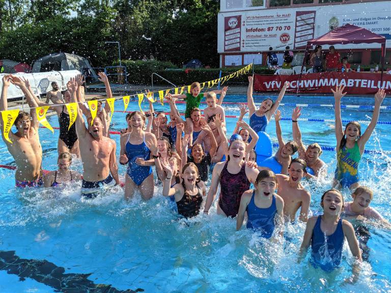 Rund 40 Haie sind nach Hildesheim zu unserem Saisonhöhepunkt gefahren, davon haben 35 aktive 186 Einzelstarts absolviert.