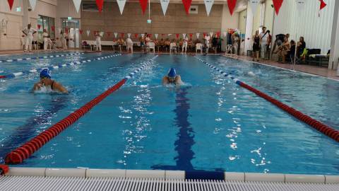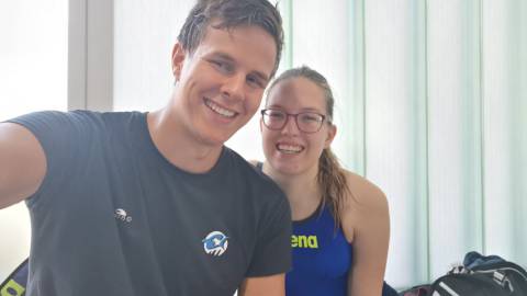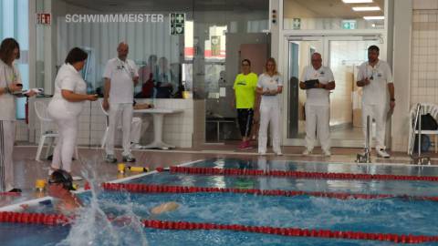 Um 9.30 Uhr ging das Einschwimmen in unserer Heimathalle in der Thomas-Mann-Straße los. In sehr entspannter Runde teilweise alleine oder zu zweit auf der Bahn einzuschwimmen, hört sich an wie ein Traum?! Bei diesem Wettkampf wird dies zur Realität. So gingen wir motiviert und komplett relaxt in den Wettkampf. Julian startete über die 50m Schmett sowie die 100m Freistil, während ich über 25m Rücken, 50m Rücken sowie Brust und 100m Lagen antrat.