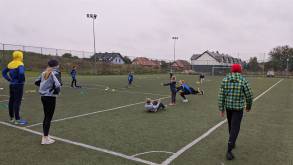 Die darauffolgenden Haie sprangen nach ihrem Training am Lande ins immer noch vor Hitze dampfende Wasser. 12.30 Uhr, die Mittagsglocke läutet… Es gab Kartoffelbrei mit käsegefüllten Hähnchenbouletten. Für die Vegetarier gab es ein gesundes Crêpe mit Spinat und Käääääääääääääääse. Nach einer nicht ganz so entspannten Mittagsruhe ging es nach draußen auf den Sportplatz für das alljährliche UNO-Spiel. Runde um Runde wurde gerannt und kleine Aufgaben in den Lauf-Pausen erledigt. Manche von uns rannten an die 14 Runden. Dann endlich, nach 45 Minuten der Schlusspfiff!!! Mit schweren Beinen kämpften sich die Mako- und die Zwerghaie in die Schwimmhalle und die Riffhaie stärkten ihr Gehirn mit einer lustigen Partie „CodeNames“. Danach flogen sie zurück ins Wasser und die restlichen Haie entspannten sich im Spielbereich des Schwimmbades „Plywalnia Aquasport“. Anschließend fanden wir uns alle im Speisesaal zum Abendbrot ein. Es gab getoastetes Brot mit Pilzen, Schinken und schon wieder Käääääääääääääääse… Im Anschluss daran sollten sich die einzelnen Gruppen noch einmal treffen, um ihre Ideen für die Wochenaufgabe auszutauschen und später noch Spiele zu spielen. Jetzt gehen wir alle (Muskel)verkatert ins Bett.