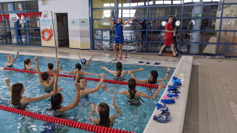 „Guten Morgen, guten Morgen Sonnenschein,…“ schallte es heute Morgen wieder pünktlich 7:15 Uhr durch die Flure unserer Unterkunft. Durch so viel positive Energie geweckt mussten wir uns mit guter Laune und in Hochstimmung zum Frühsport begeben. In der kleinen Turnhalle weckten wir dann auch die letzten müden Geister mit Lauf-, Koordinations- und Yogaübungen. Doch auch die besten Ereignisse enden leider irgendwann und so wurden wir gezwungen die wunderschöne Turnhalle zu verlassen und uns zum Frühstück aufzumachen, um uns dort für den Schwimmtag zu stärken. Beim üblichen Rührei, polnischen Brötchen, sehr süßer Marmelade, Wurst und Käse füllten wir unsere Leiber mit den notwendigen Nährstoffen für den Tag.