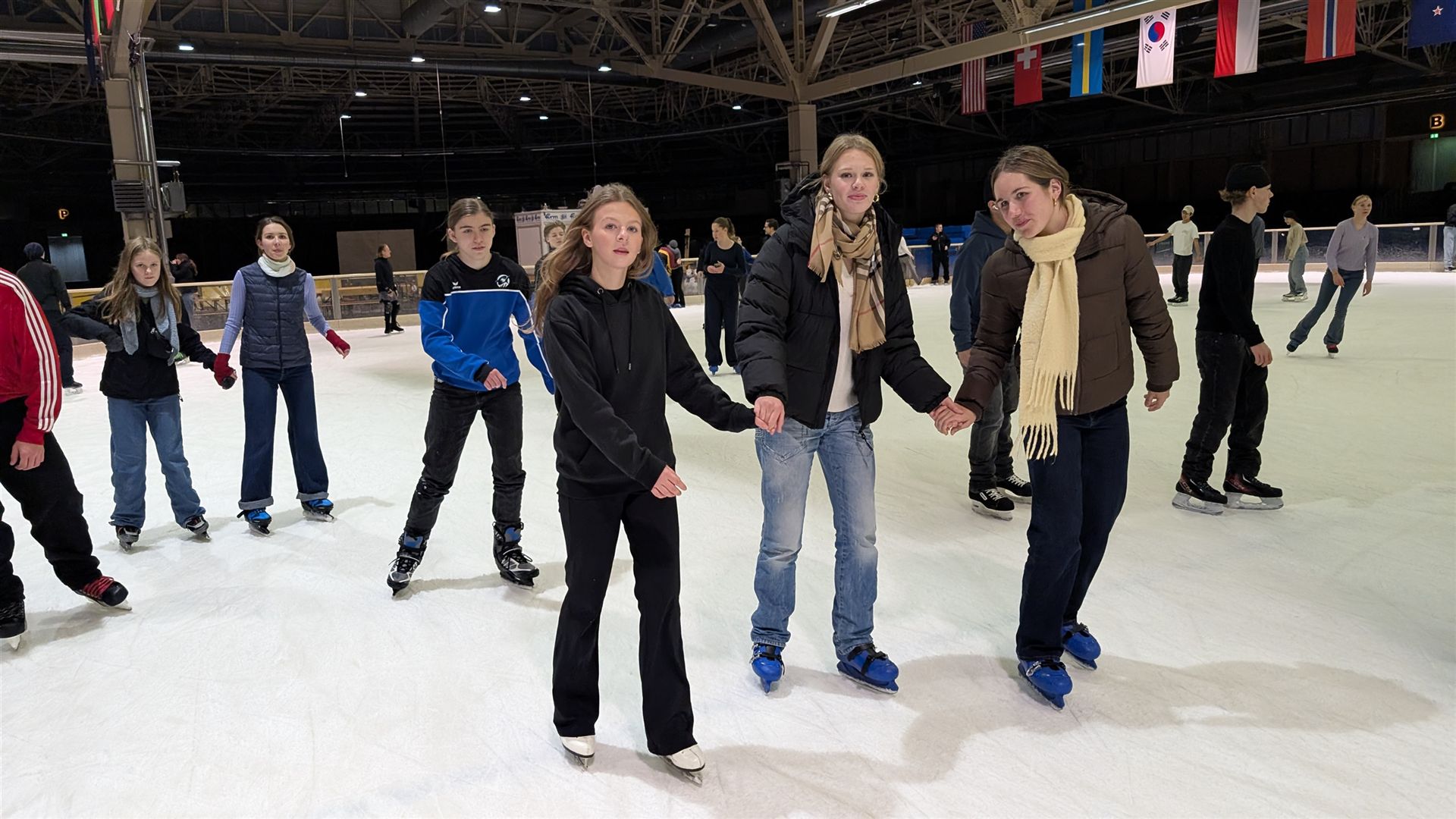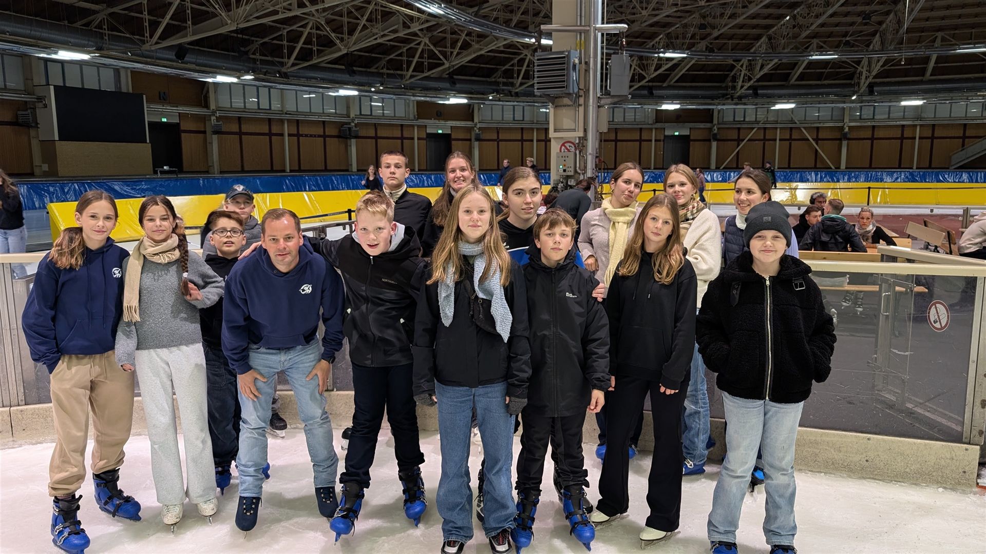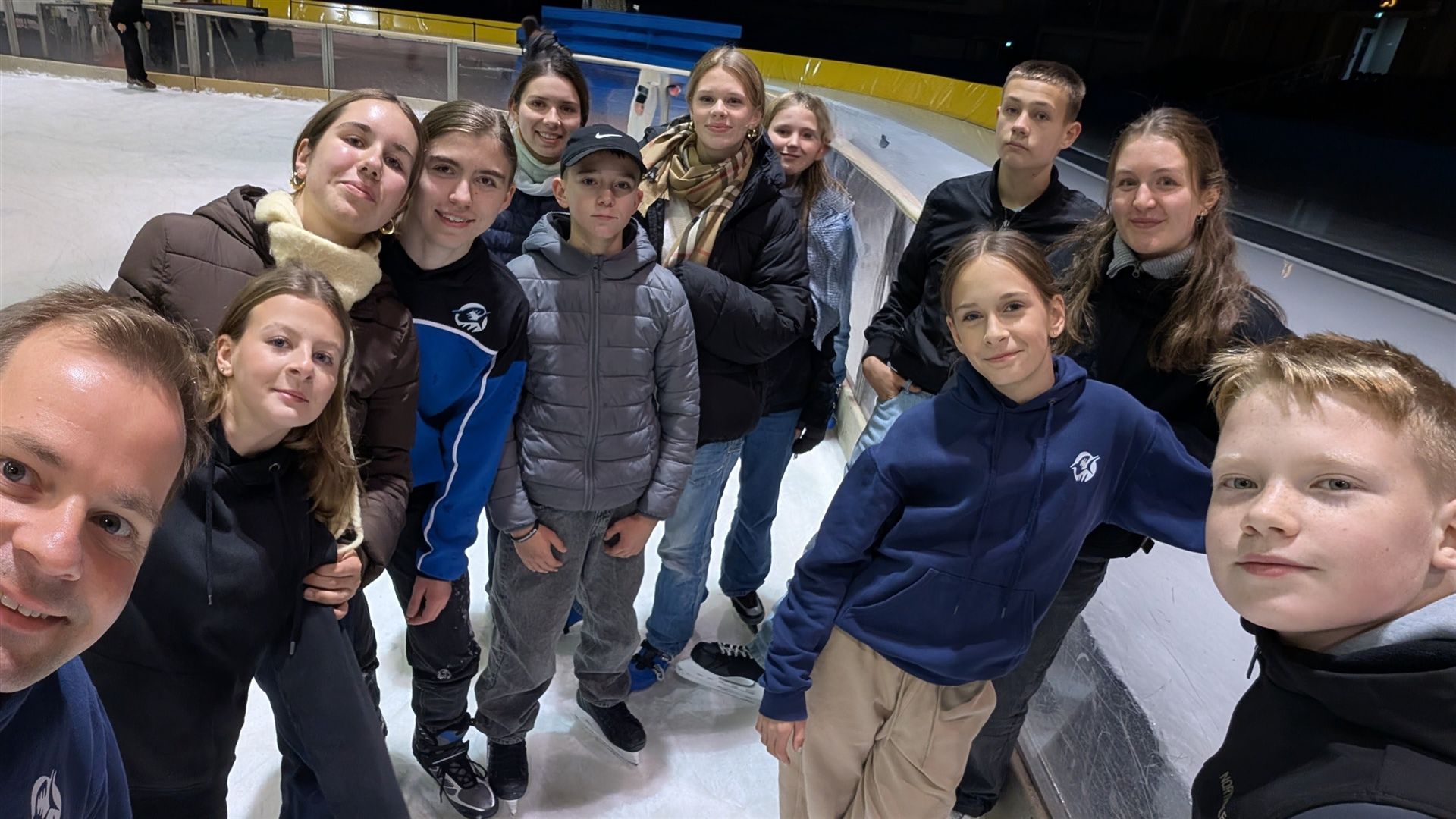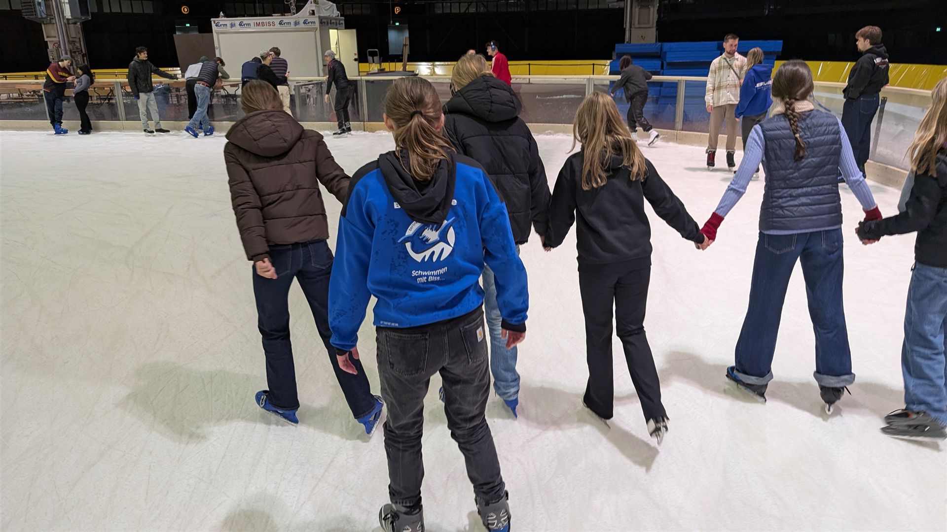 Schon um 18:45 Uhr versammelten wir uns vor dem Eingang – voller Vorfreude und mit ein bisschen Nervosität, besonders bei denen, die zum ersten Mal auf Schlittschuhen standen. Für einige war es eine ganz neue Erfahrung, das Element Wasser in gefrorener Form zu betreten – und das mit viel Mut und Neugier!
