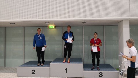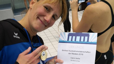 Am 18. November 2018 fanden die diesjährigen Berliner Kurzbahnmeisterschaften der Masters in der SSE - Landsberger Allee statt. Wir haben mit einem sehr kleinen, dafür aber durchaus konkurrenzfähigem Team teilgenommen! Catrin und Julian (die sich lustigerweise gegenseitig trainieren und somit als Schwimmer und Trainer heiß auf Erfolge waren) gaben mit der Unterstützung von Nicole alles, was sich schließlich auch in den Ergebnissen widerspiegelte. Schon beim ersten Rennen über 50 m Freistil gelang Catrin mit einer Jahresbestzeit von 0:30,33 min. die Titeljagd und so dürfen wir uns freuen, das die diesjährige Berliner Meisterin in der AK 35 von den Berliner Haien kommt. Julian legt umgehend nach und erschwamm sich über 100m Schmetterling in einer Bestzeit von 1:08 vor der Entenkonkurrenz namens Max den zweiten Platz in seiner AK 20. Den Medaillensatz komplettierte dann Catrin mit ihrem zweiten Start über 100m Brust,