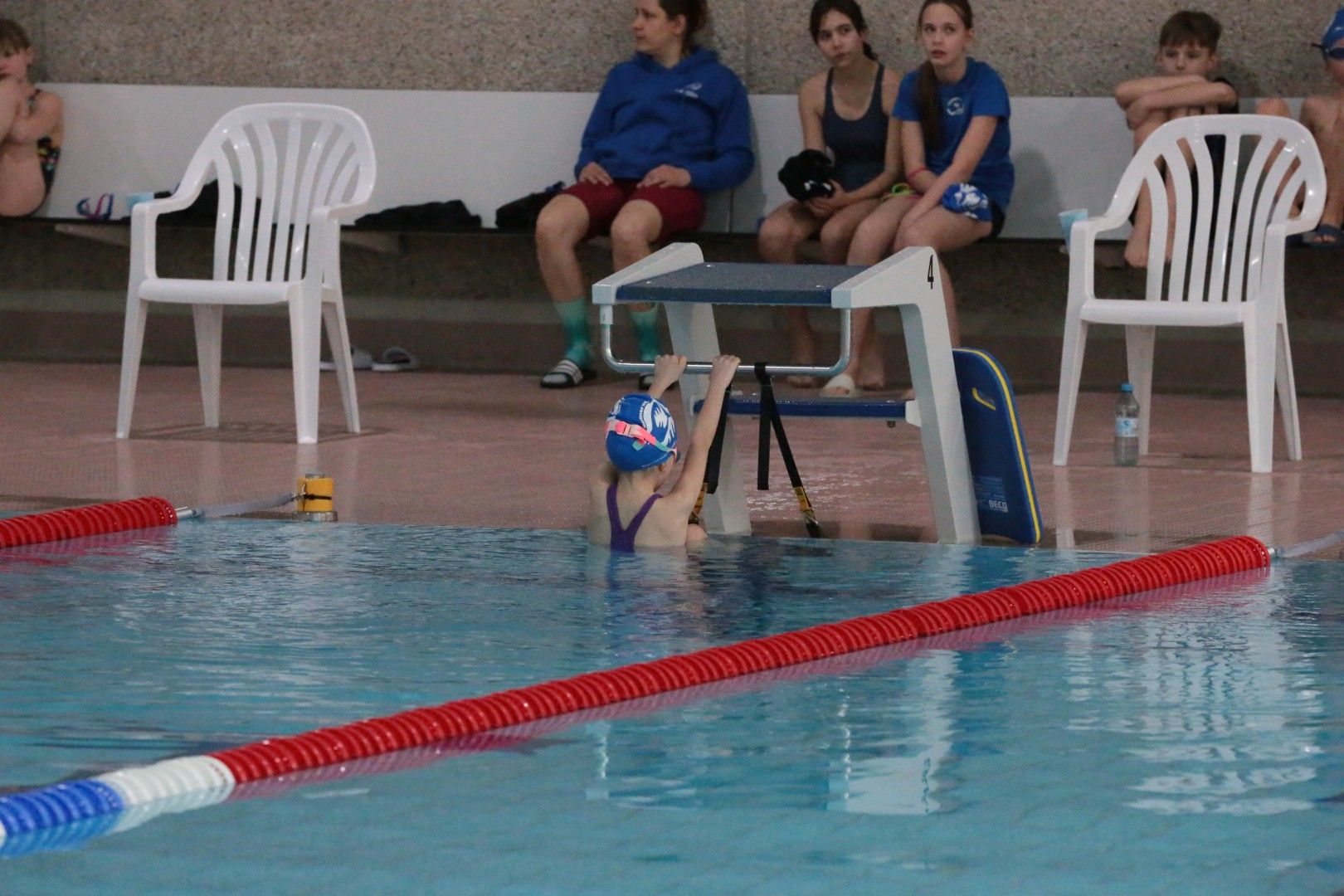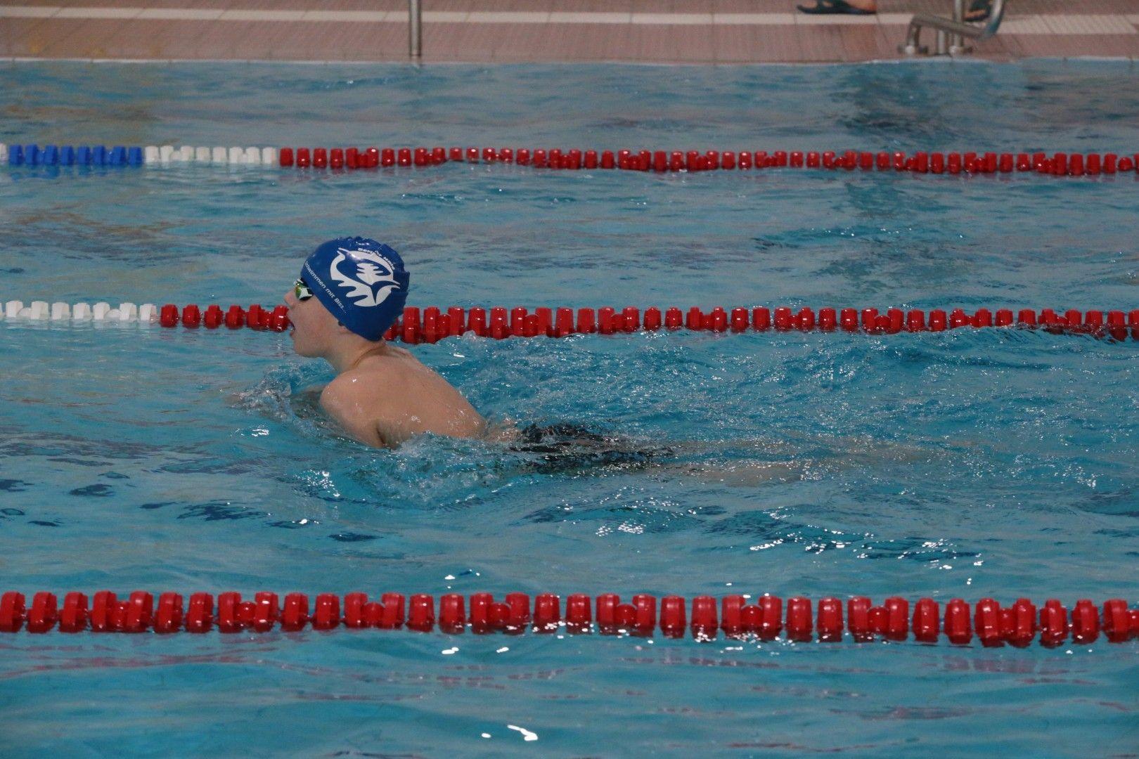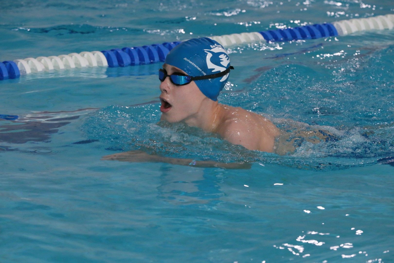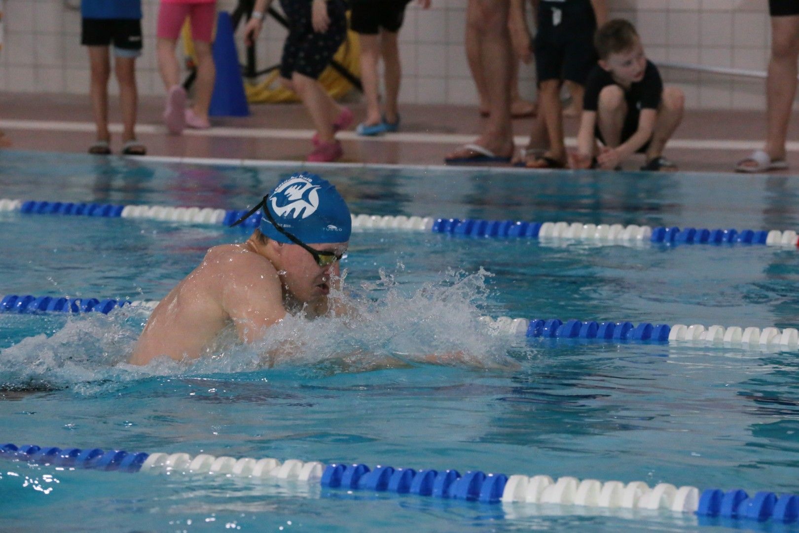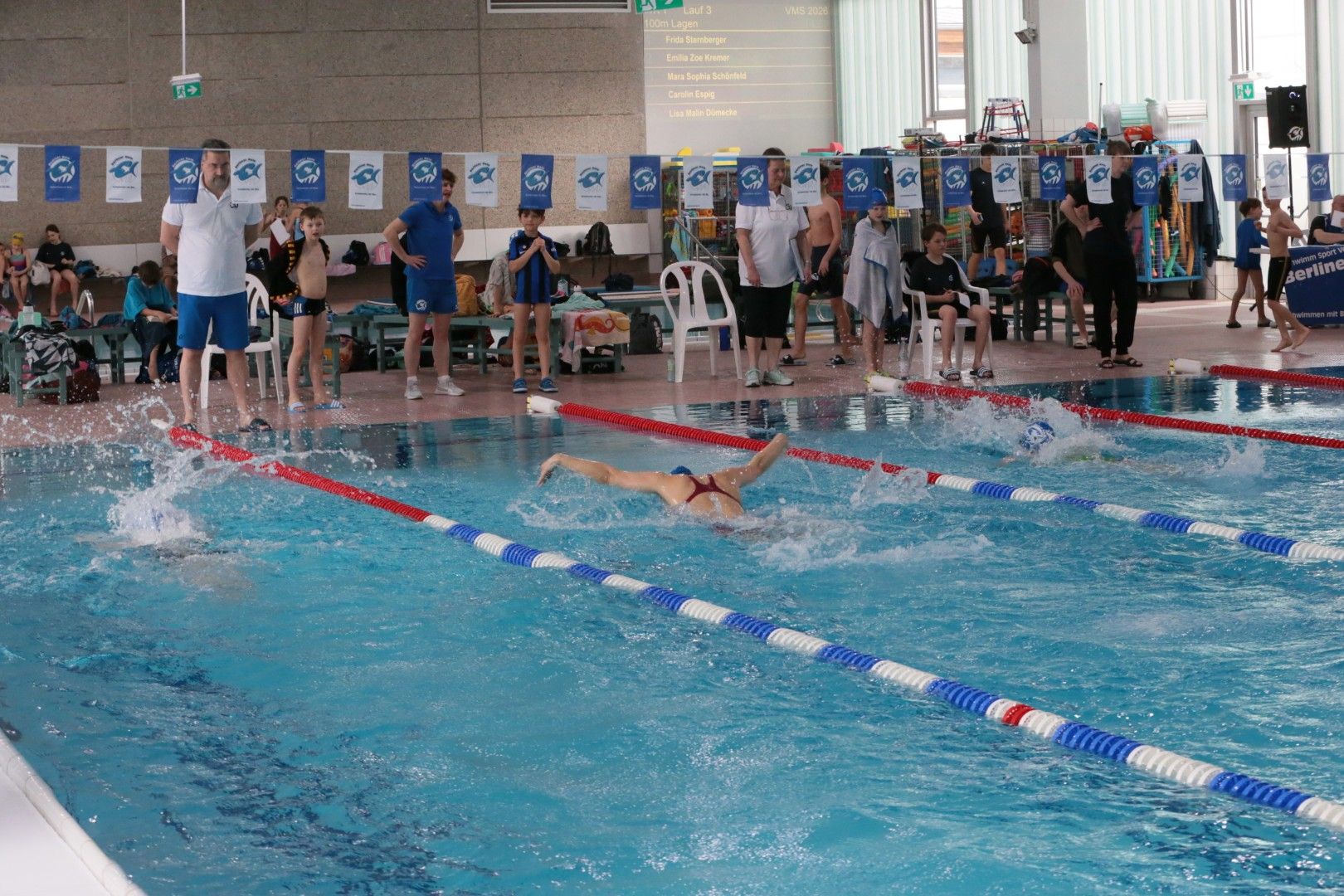 Als dann endlich die Türen aufgingen, waren alle Haie hungrig auf den Biss nach Bestzeiten, Urkunden und guten Platzierungen. Das erste Ziel war für viele klar: schnell in den Umkleiden einen freien Schrank ergattern. Danach ging es direkt ins kühle, enge Nass zum Einschwimmen, um sich auf die bevorstehenden Rennen vorzubereiten.