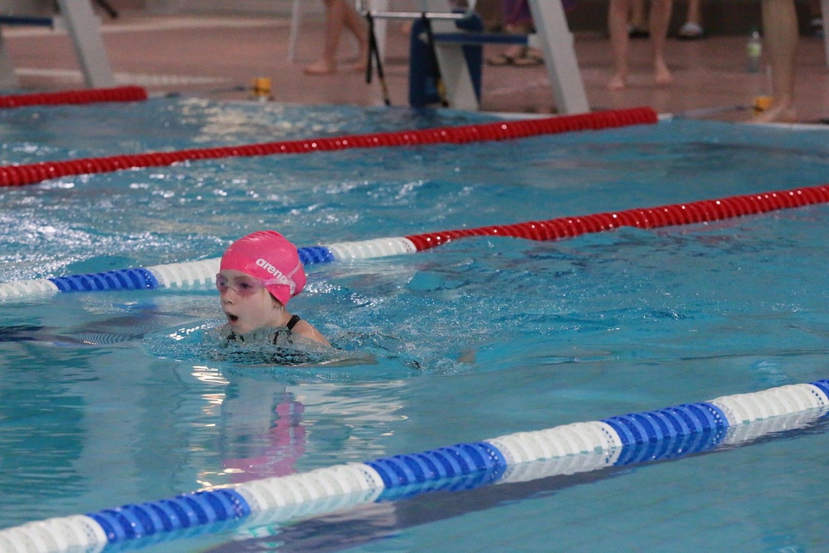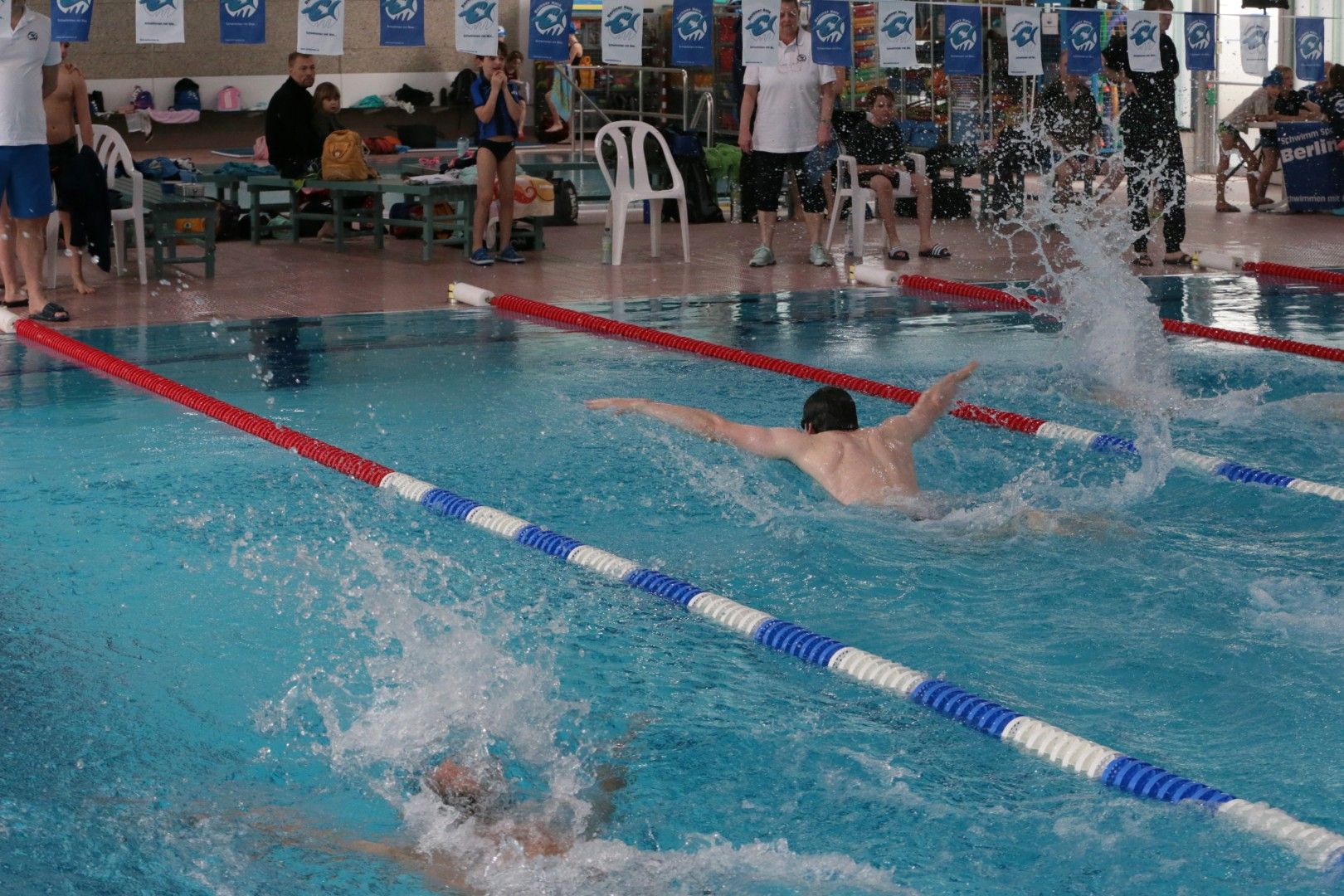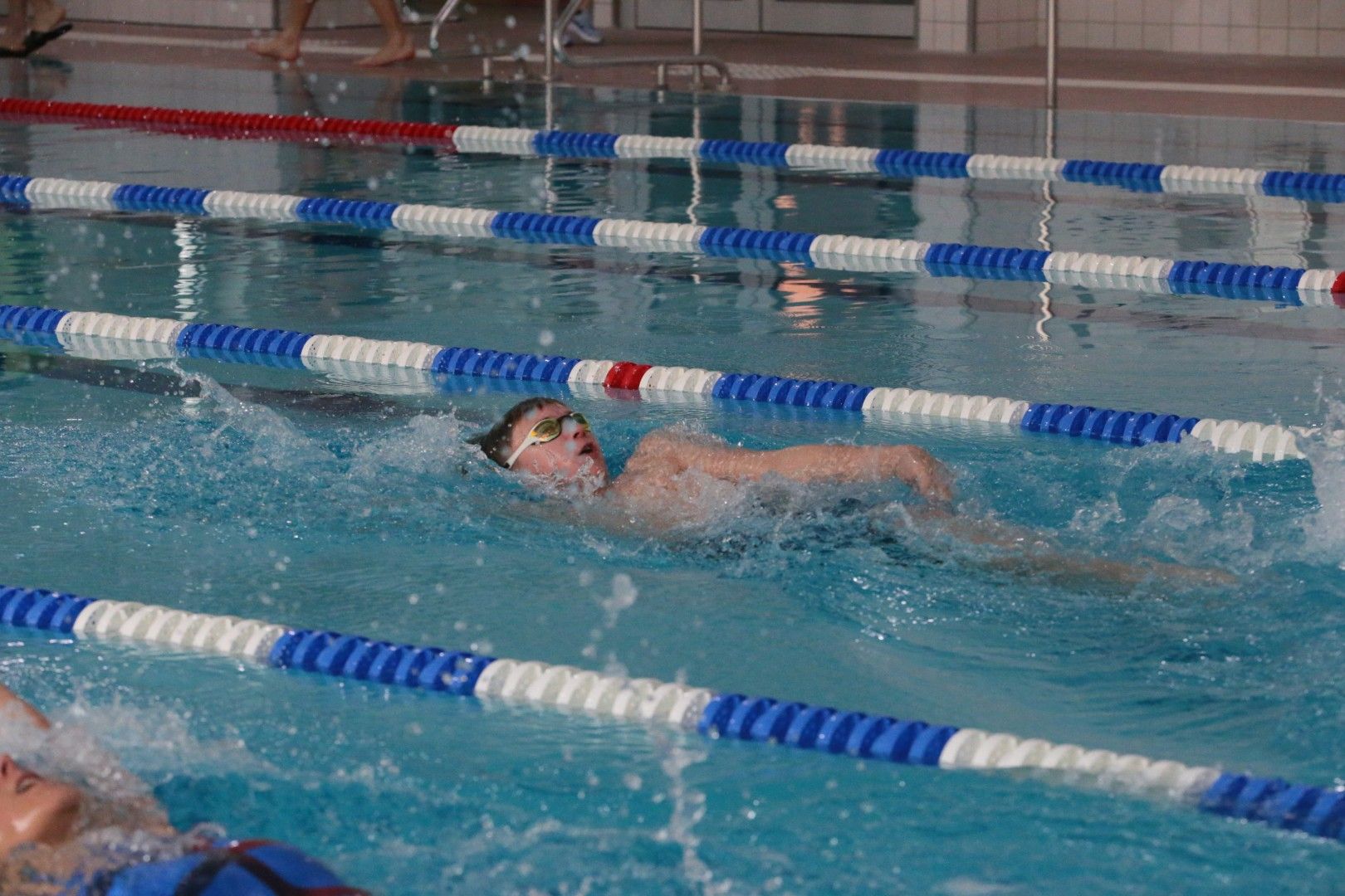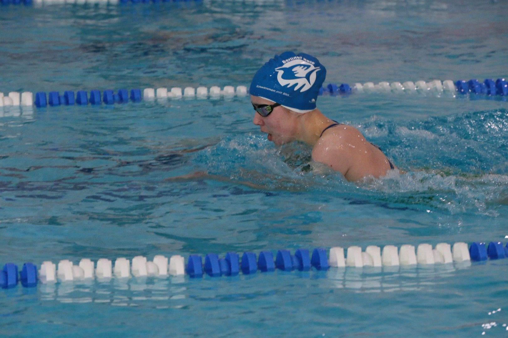 Als dann endlich die Türen aufgingen, waren alle Haie hungrig auf den Biss nach Bestzeiten, Urkunden und guten Platzierungen. Das erste Ziel war für viele klar: schnell in den Umkleiden einen freien Schrank ergattern. Danach ging es direkt ins kühle, enge Nass zum Einschwimmen, um sich auf die bevorstehenden Rennen vorzubereiten.