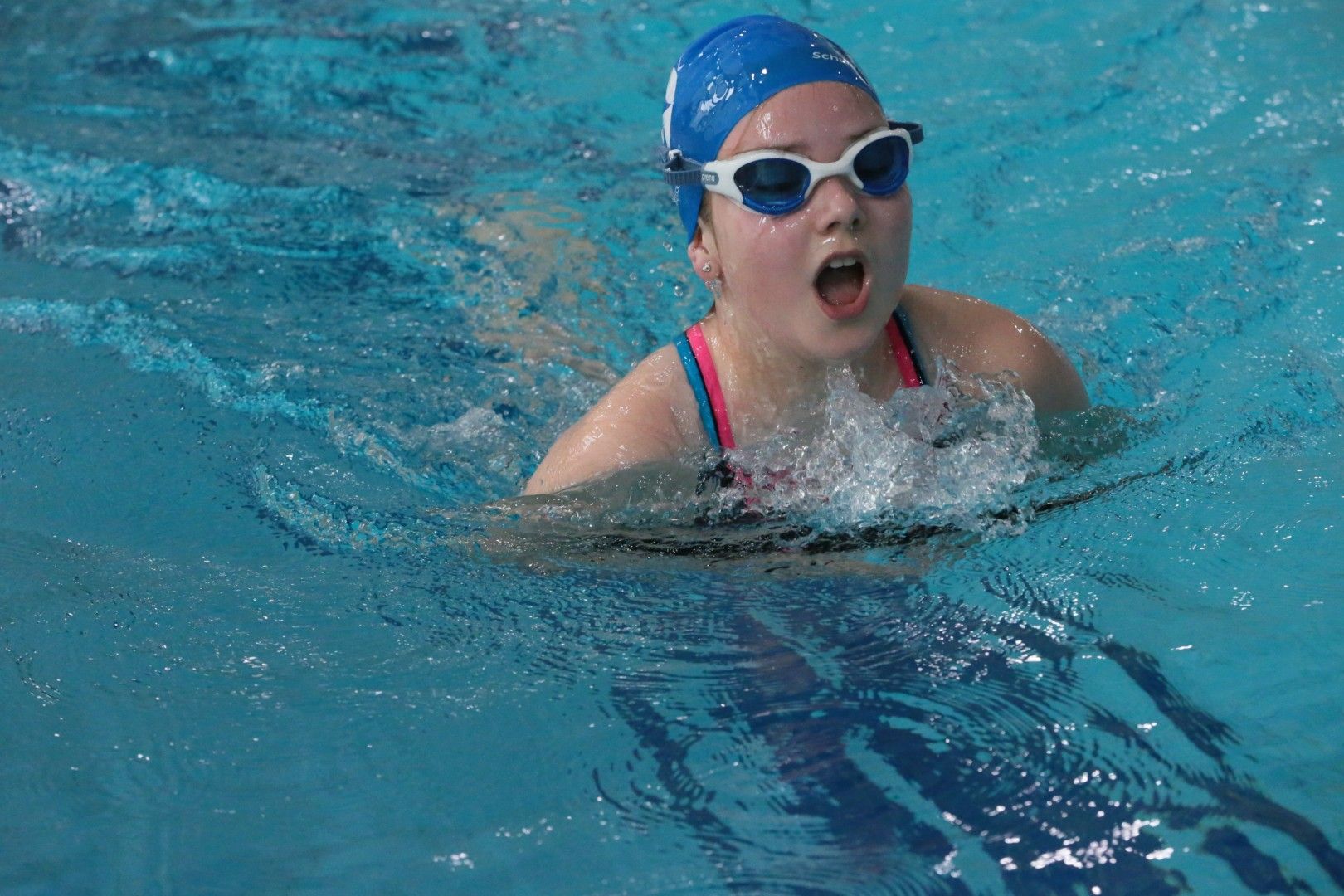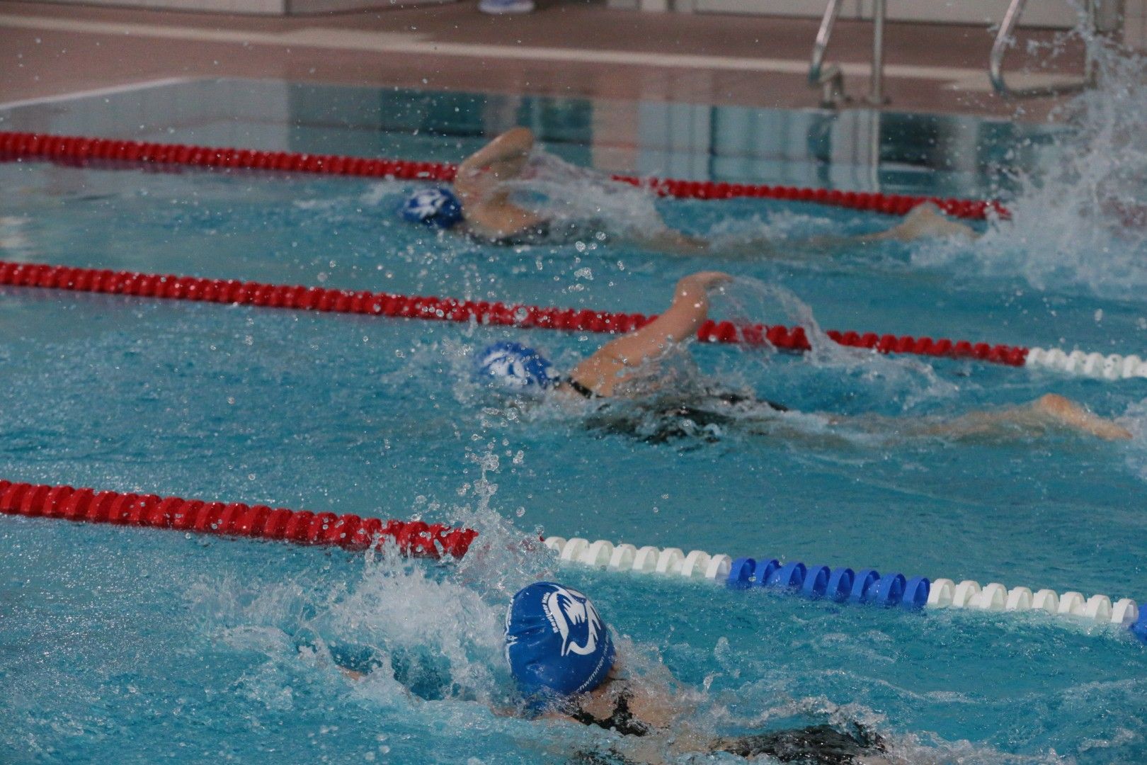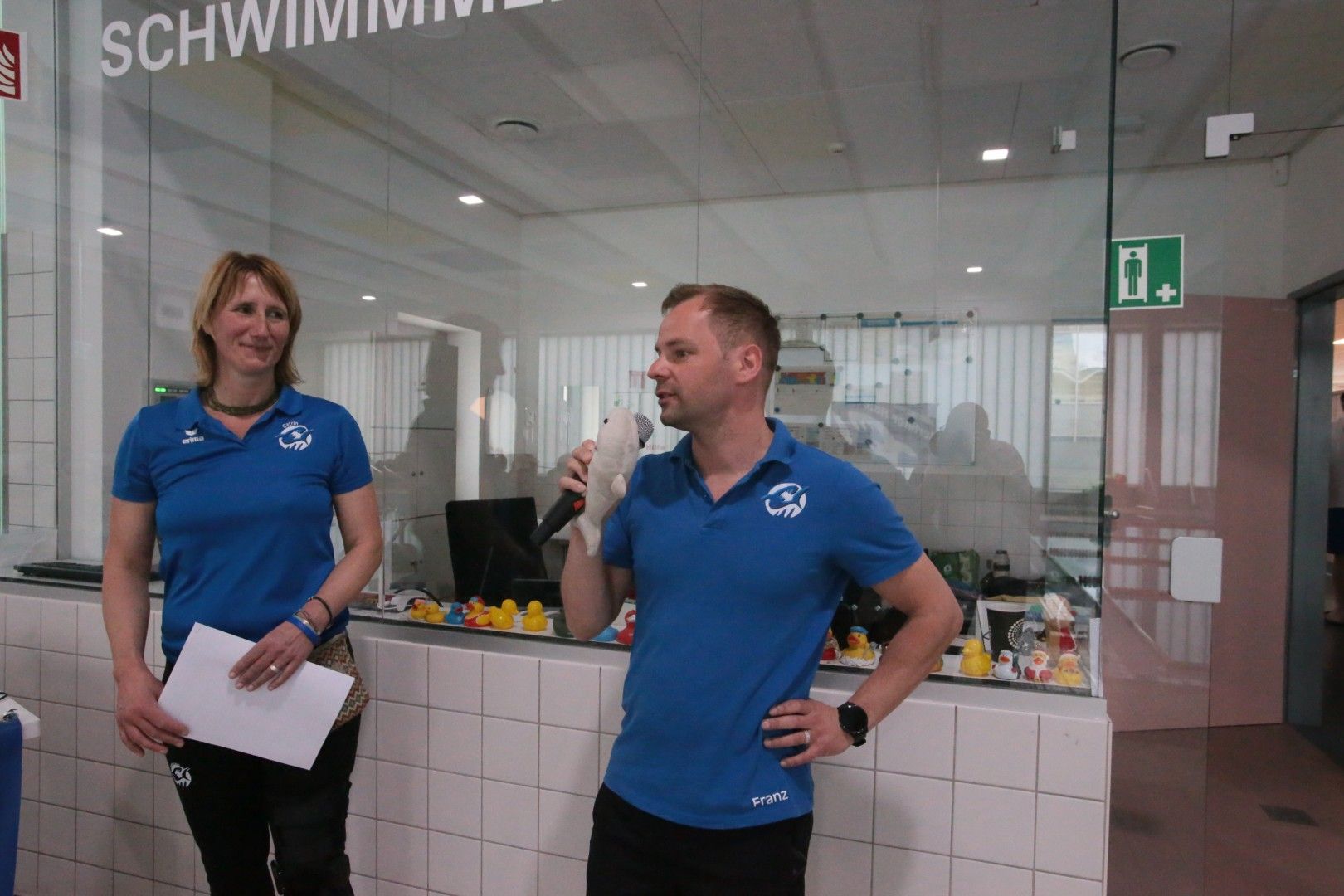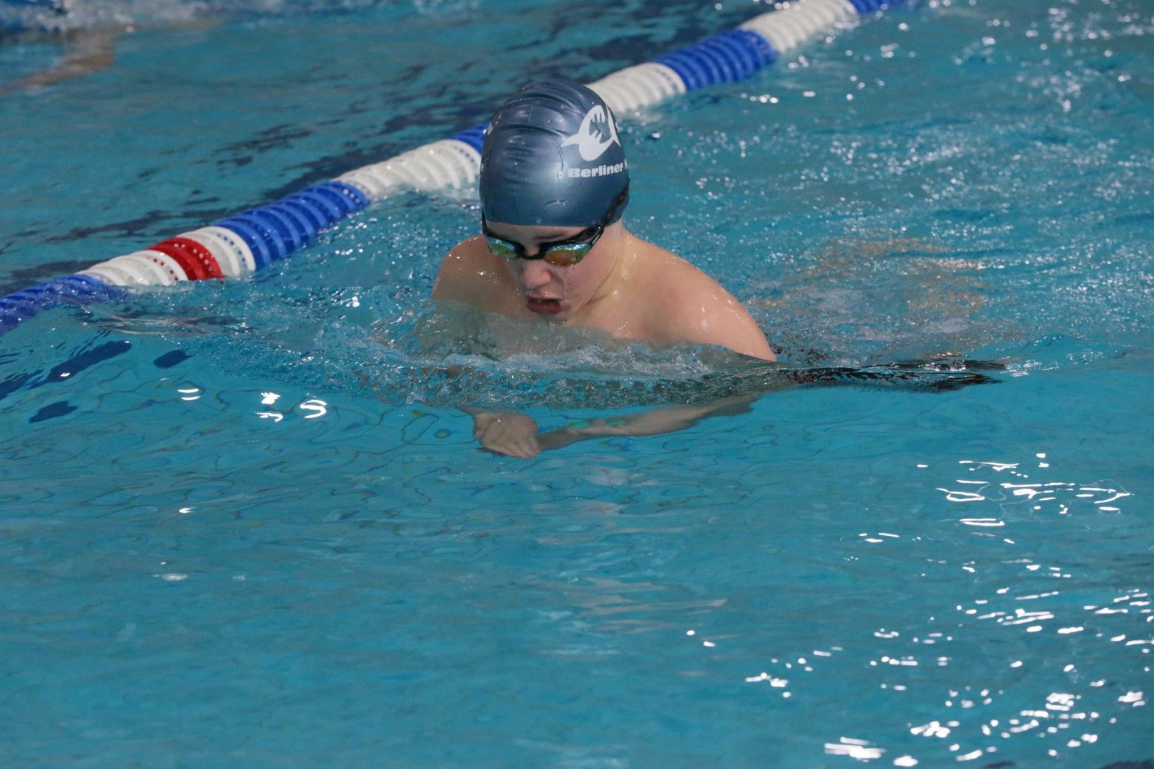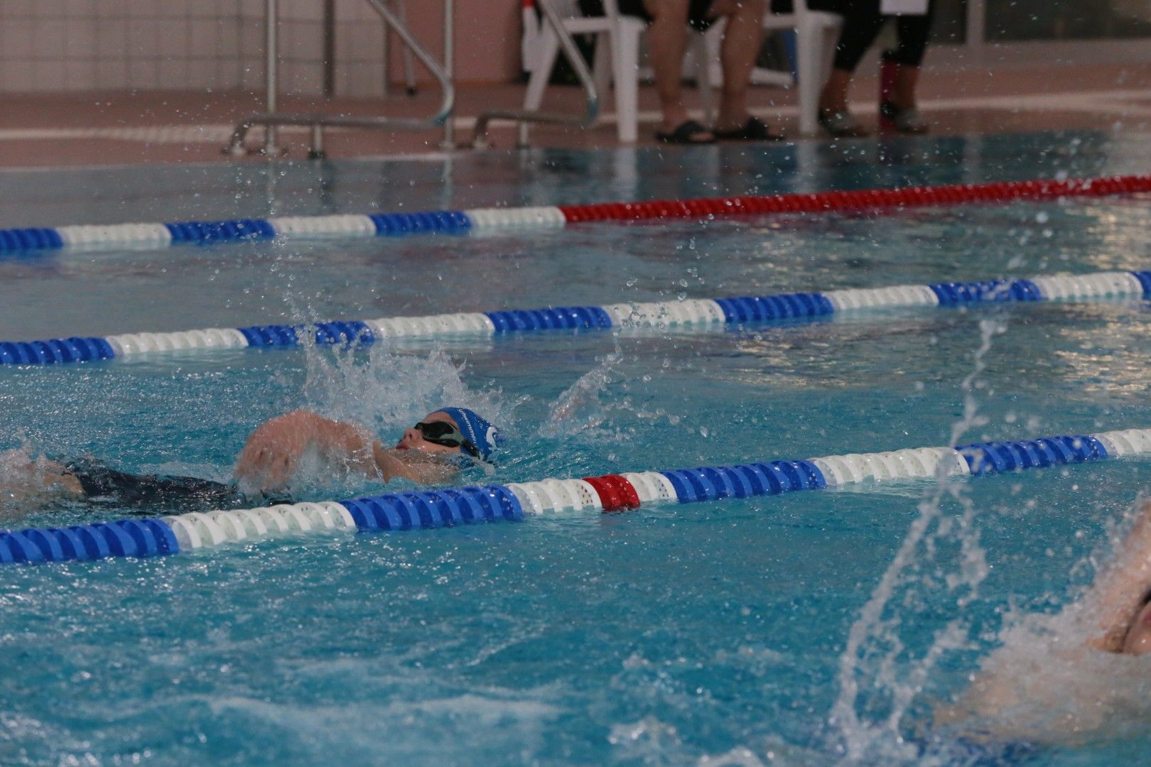 Als dann endlich die Türen aufgingen, waren alle Haie hungrig auf den Biss nach Bestzeiten, Urkunden und guten Platzierungen. Das erste Ziel war für viele klar: schnell in den Umkleiden einen freien Schrank ergattern. Danach ging es direkt ins kühle, enge Nass zum Einschwimmen, um sich auf die bevorstehenden Rennen vorzubereiten.
