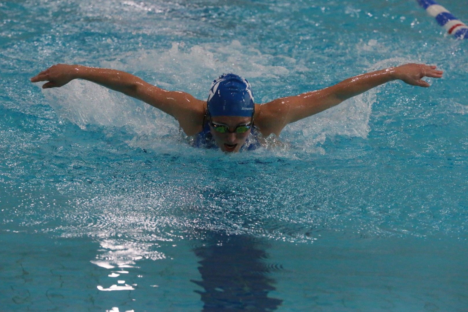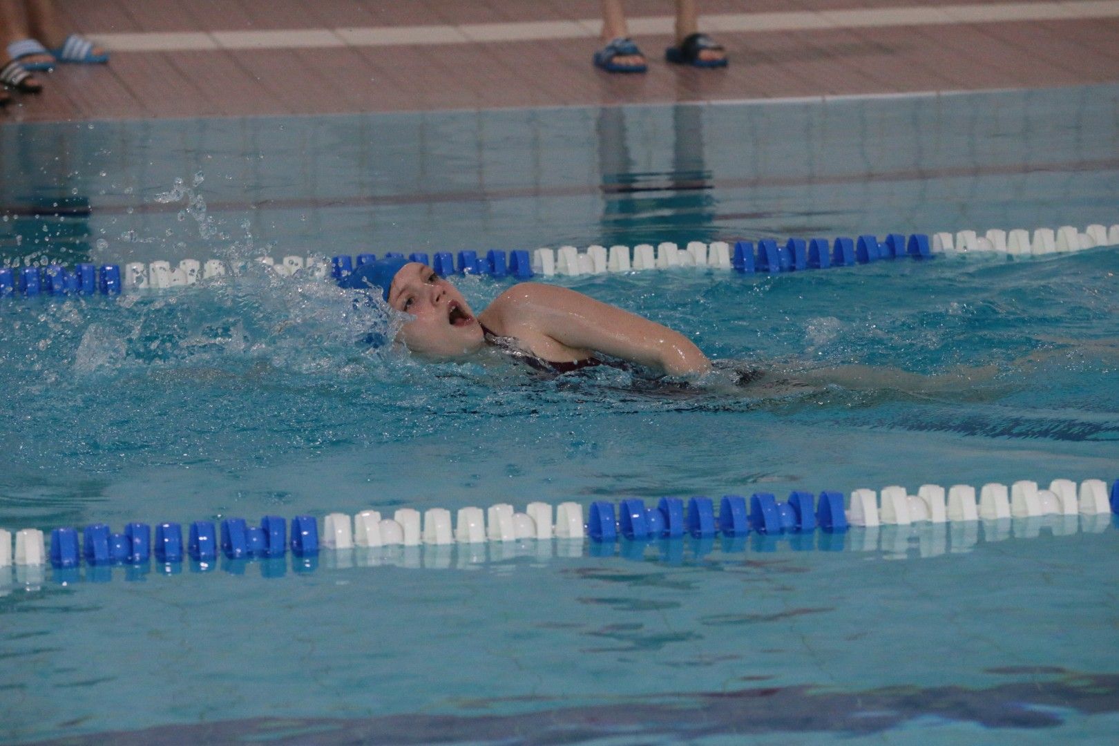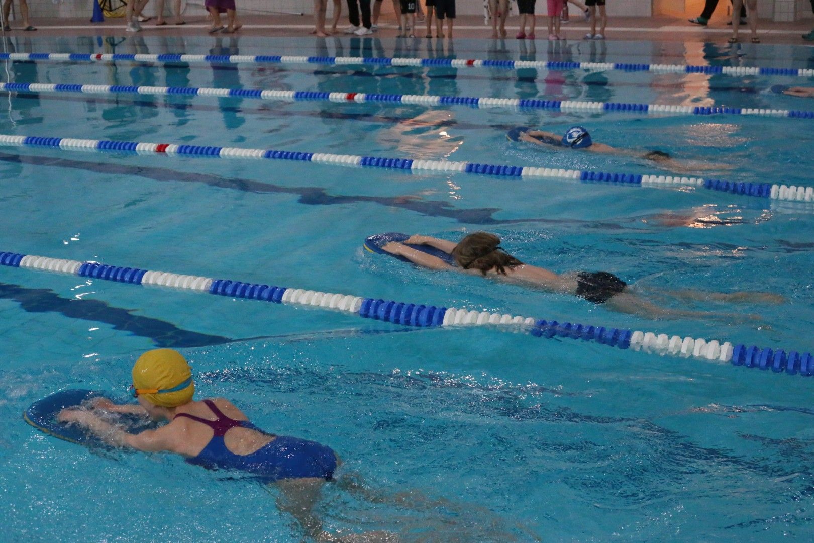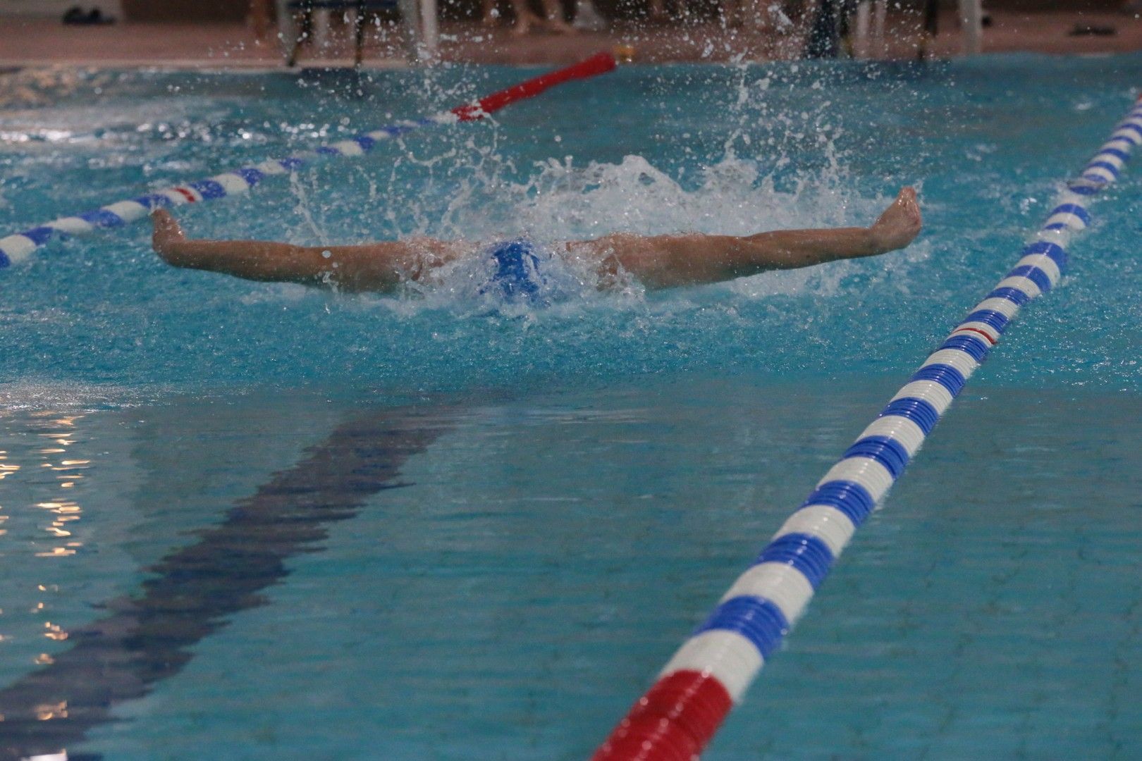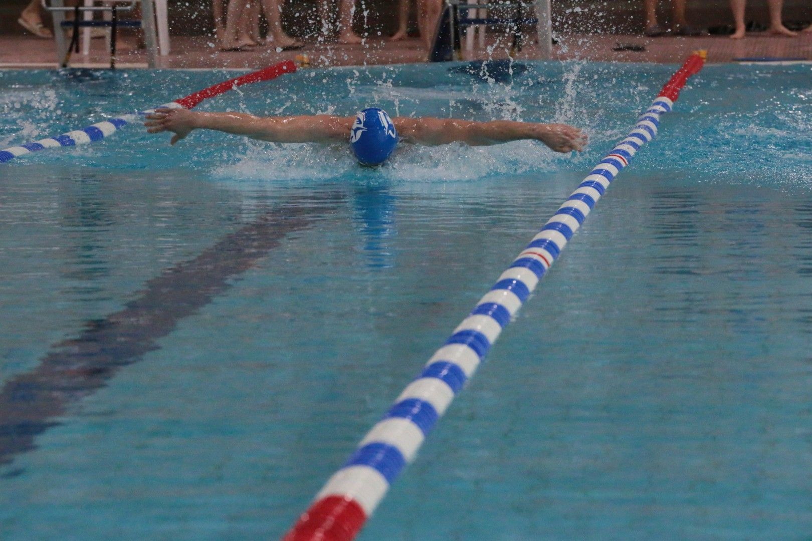 Als dann endlich die Türen aufgingen, waren alle Haie hungrig auf den Biss nach Bestzeiten, Urkunden und guten Platzierungen. Das erste Ziel war für viele klar: schnell in den Umkleiden einen freien Schrank ergattern. Danach ging es direkt ins kühle, enge Nass zum Einschwimmen, um sich auf die bevorstehenden Rennen vorzubereiten.
